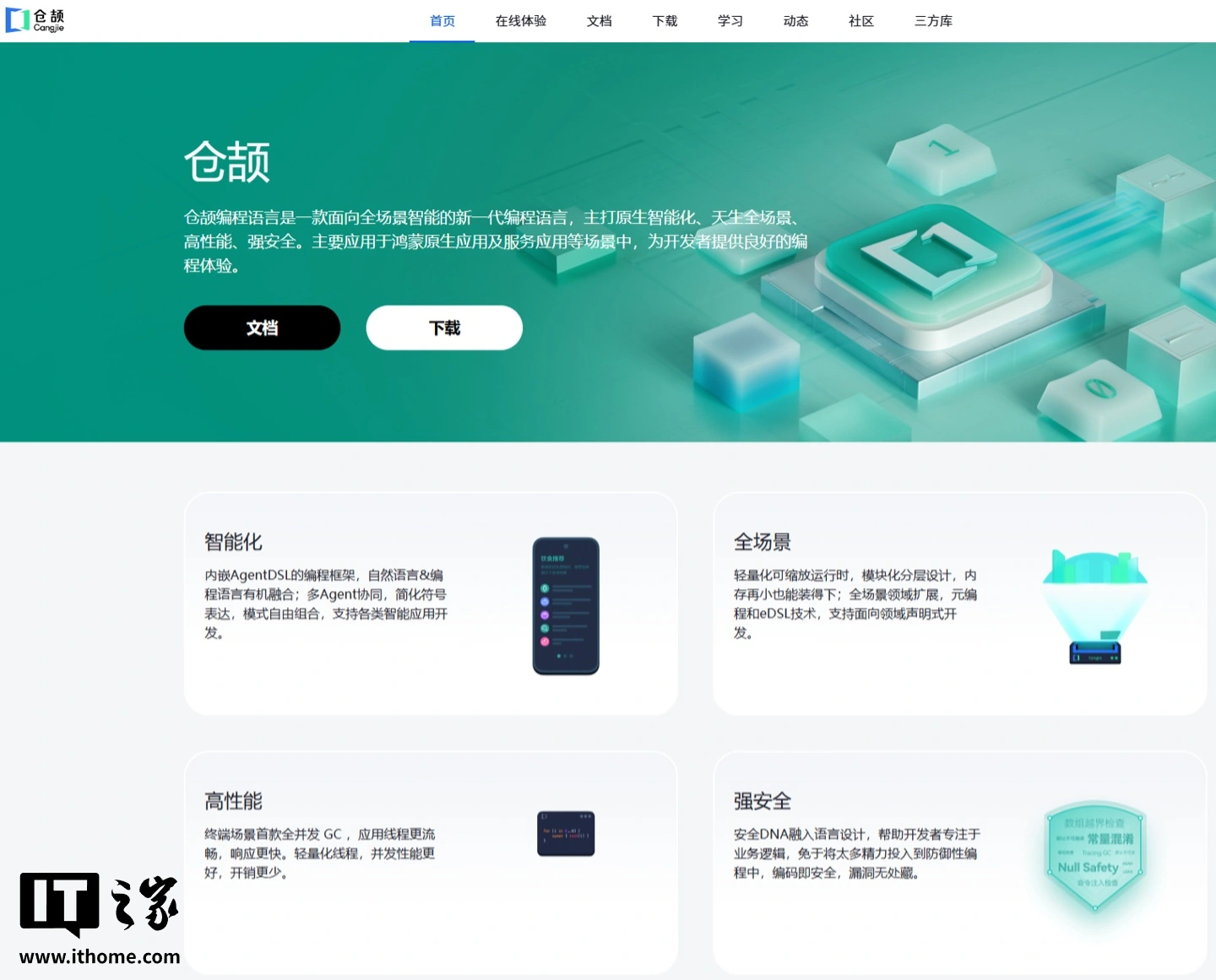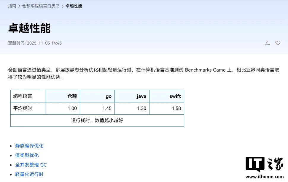IT之家 11 月 5 日消息,华为 HarmonyOS 开发者官网显示,由华为技术有限公司-编译器与编程语言实验室仓颉语言团队编写的《仓颉编程语言白皮书》现基于 Cangjie 1.0.0 版本作出更新。官方表示,仓颉编程语言具体特性表现为:高效编程、安全可靠、轻松并发、卓越性能。